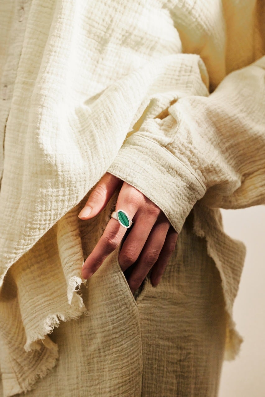 マッドに仕上げた表面がマラカイトの鮮やかなグリーンを引き立てます。